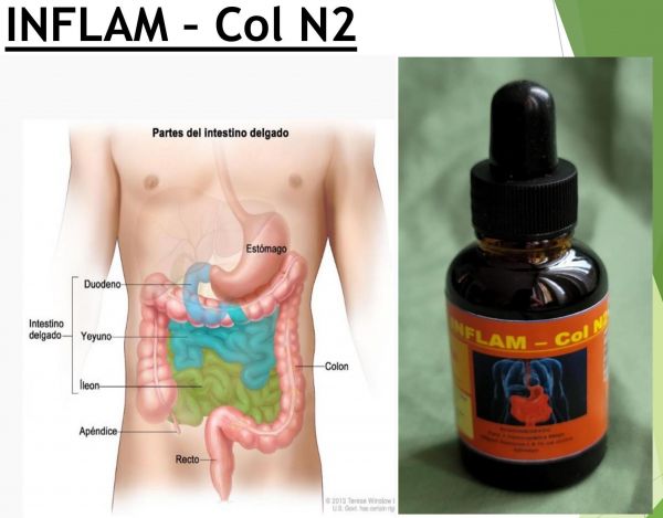 Útil para: Inflamación intestinal, colitis nerviosa, eructos, fases (flatos), pereza intestinao, mejora el movimiento intestinal, úlceras intestinales, mucosa intestinal.
